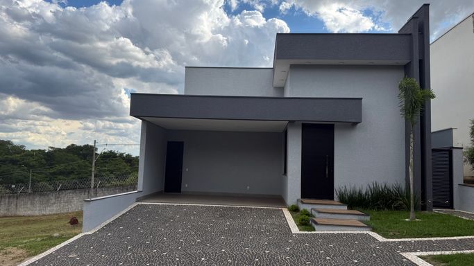Casa térrea em Paulínia disponível para venda - RESIDENCIAL CLUB SANTORINI Área útil: 220,41 m² | Área total: 350 m² | 3 suítes | 4 vagas Projeto harmonioso, com 3 suítes, sendo a master com closet, sala para dois ambientes com pé direito duplo, escritório, lavabo, cozinha e espaço gourmet conectados, piscina e vestiário. Sistema de aquecimento solar, móveis planejados, persianas automatizadas, metais Deca e ar-condicionado em todos os ambientes. O Luxo desta casa, espera por você ….