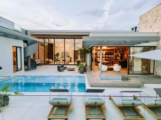 Sobrado de Alto Padrão à Venda no Alphaville Campinas - SP Sobrado Moderno, parcialmente mobiliado com uma área construída de 545m², são com 4 suítes, além de 1 banheiro externo e lavabo. Com uma estrutura completa, o sobrado possui área de serviço, dormitório de empregada, lavanderia, cozinha americana, banheiro de empregada, despensa, escritório, sacada e duas amplas salas de estar e jantar. O imóvel também conta com 3 vagas cobertas e 3 vagas descobertas, pé direito duplo, elevador, aquecimento de água com energia solar, ar-condicionado em todos os ambientes, depósito e uma bela área de lazer com piscina, churrasqueira e varanda gourmet. Está semi-mobiliado e Decorado. Além disso, o imóvel já possui armários planejados na área de serviço, cozinha, home theather/cinema, banheiros, closet dos dormitórios e escritório. O Verdadeiro Luxo desta casa, espera por você ….