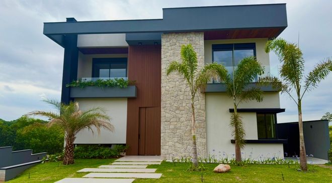 Sobrado com 4 suítes uma vista incrível para área de preservação ambiental e muita privacidade. Sobrado em local único no condomínio. Salas de estar e jantar integradas com pé-direito duplo e fachada com Vidros Habitat by Cebrace que reduz em até 70% a entrada de calor no ambiente e diminuem a entrada dos raios UV. Escritório planejado, sala home theater, lavabo, cozinha integrada com ilha, marcenaria Florense, lavanderia planejada depósito, brinquedoteca e espaço para canil e horta. Lazer com piscina aquecida, paisagismo Thalita Vitachi , a iluminação em toda área externa foi projetada para deixar a casa ainda mais encantadora. Piso Superior com 4 suítes planejadas sendo uma Master com closet, sala de banho e terraço privativo com vista permanente para mata. Subsolo com ampla garagem privativa e coberta para 4 veículos e dois descobertos. O verdadeiro Luxo desta casa, espera por você ….