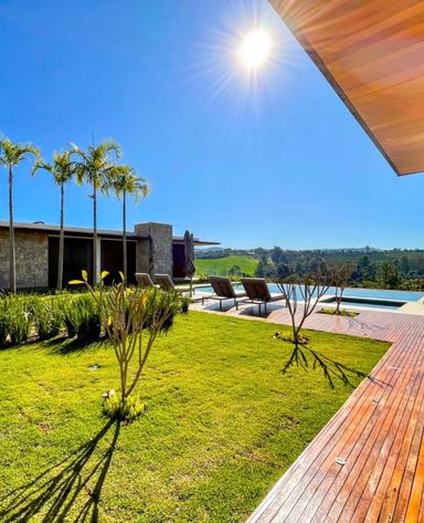OND. QUINTA DA BARONEZA - BRAGANÇA PAULISTA-SP ALTÍSSIMO PADRÃO Em um terreno de 3.333 m² e construção de 1.385 m², a Casa Aroeira, possui 6 suítes + sala íntima, sala de estar e jantar, home theater, uma ampla área gourmet próxima ao lazer, que conta com piscina com borda infinita e prainha, sauna e jacuzzi externa e garagem coberta para 4 vagas 6 suítes, sendo 4 no superior e 2 de hóspedes no térreo Suíte Master de 63 m² com Closet, Home Office e Banho Ele/Ela Jacuzzi externa e Sauna úmida Sala de Estar e Jantar Home Theater Área gourmet com varanda externa coberta e fogo de chão Piscina com prainha Cozinha com Despensa e Louceiro Lavanderia Depósito e bicicletário Dependências para caseiro com 2 quartos, sala e cozinha Garagem com 4 vagas cobertas
