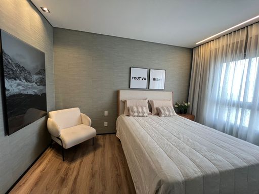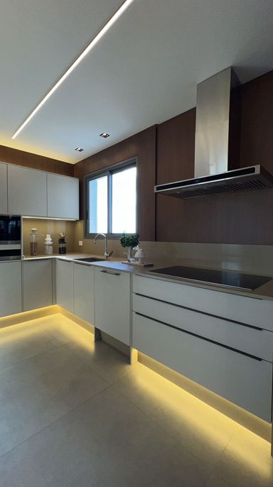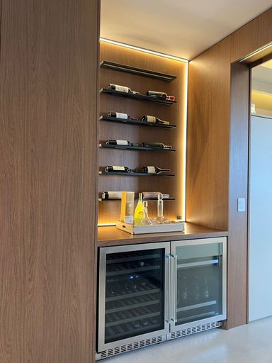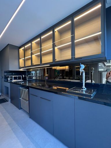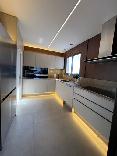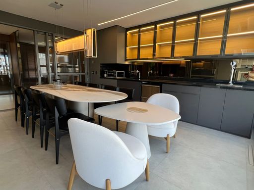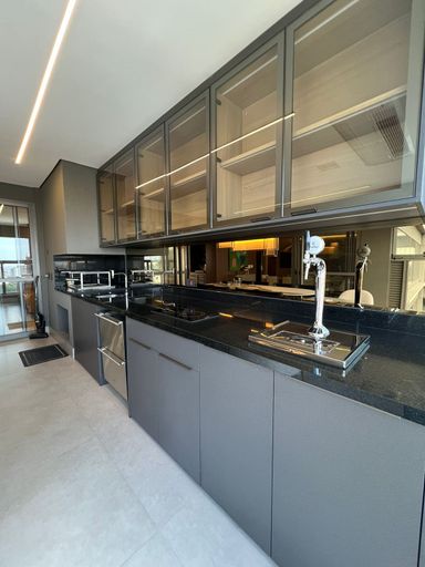 Sala de Tv, Cozinha com marcenaria, iluminada indireta em Led, eletrodomésticos da marca EVOL (geladeiras, cooktop de indução, coifa, Forno elétrico e Micoondas. Além de um aconchegante ambiente de Adega com porta vinhos, cervejeira e adega EVOL