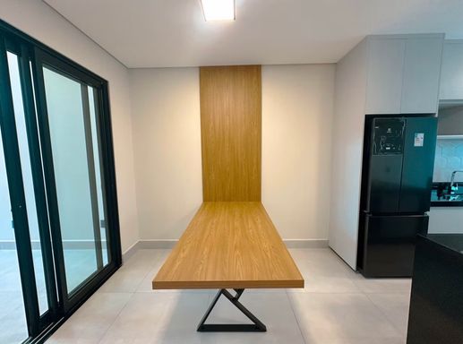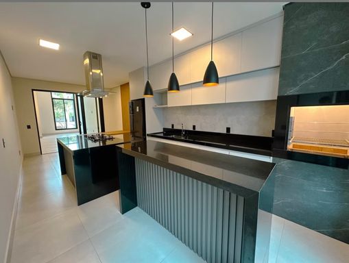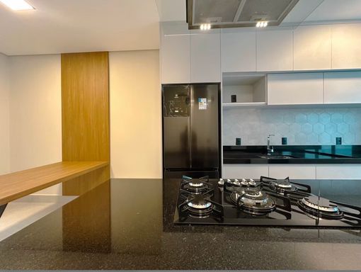 Área gourmet com forno, cooktop e coifa