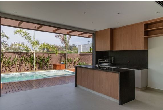 Gourmet com ilha integram a uma deliciosa piscina com prainha, paisagismo e voltados também para a Vista da Mata.