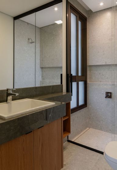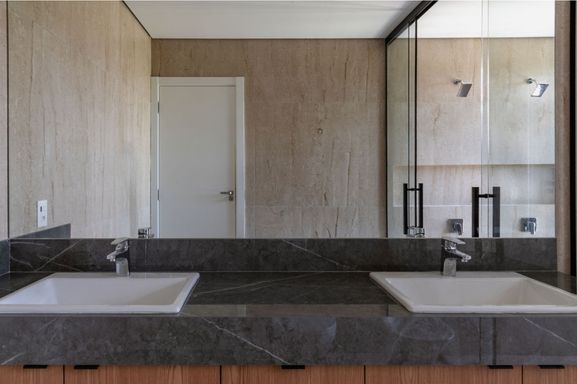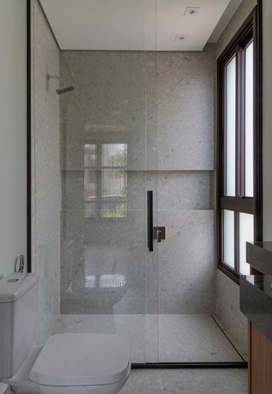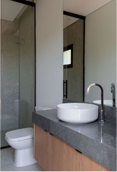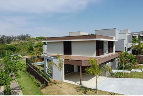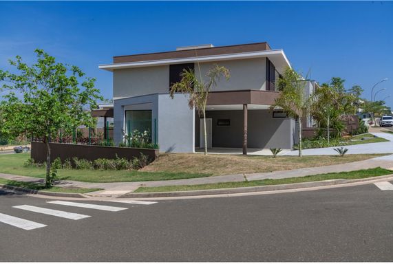 Casa Contemporânea com 4 belissimas suites todas com armários planejados, a Master com Closet, banheiro com pias e chuveiros duplos e banheira de imersão e um lindo terraço com vista para uma área de preservação.