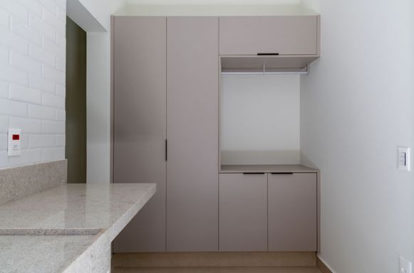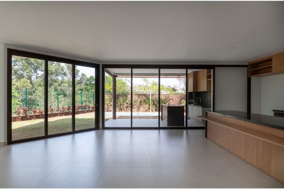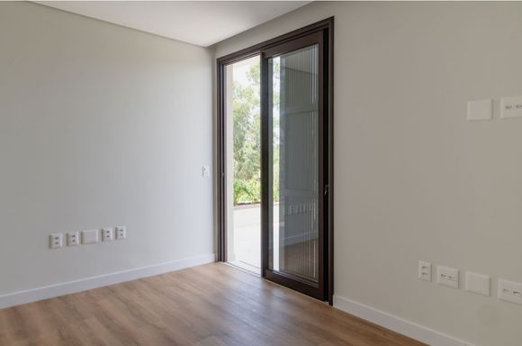 Ambientes totalmente integrados, cozinha estilo americano, lavanderia, escritório, adega, armários planejados living para dois ambientes com uma bela vista pata a Mata.