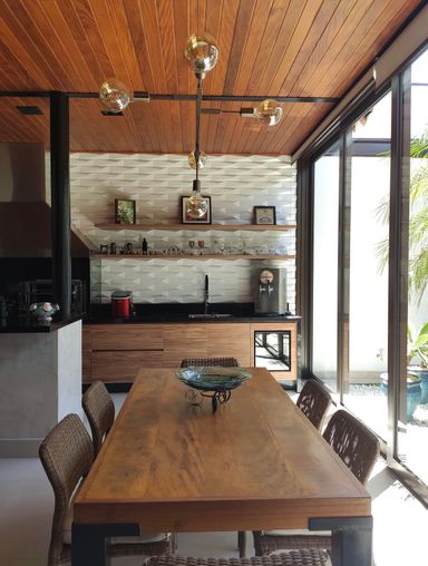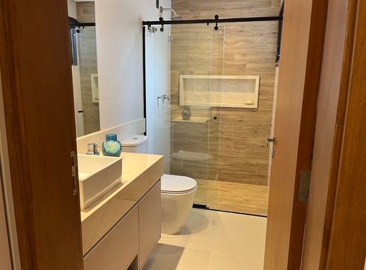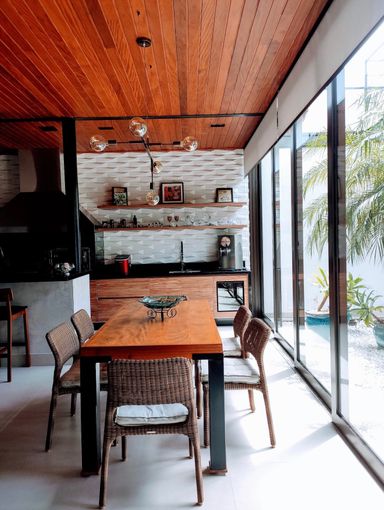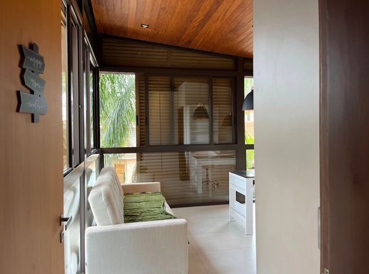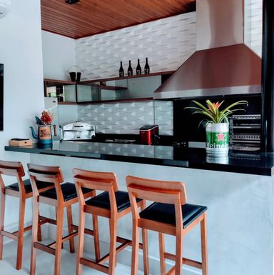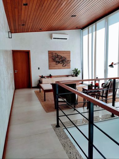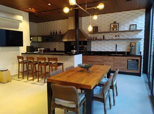 Area gourmet com geladeira, chopeira e espaço para forno de pizza, area de serviço e despensa. Possui um Elevador panoramica para 3 pessoas, sala intima com lareira e varanda com vista panoramica para area de preservaçao permanente.