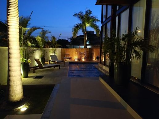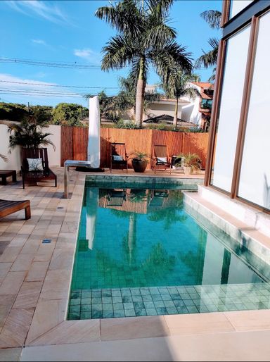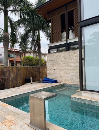 Garagem para 3 carros cobertos , piscina aquecida com cascata e um lindo paisagismo.