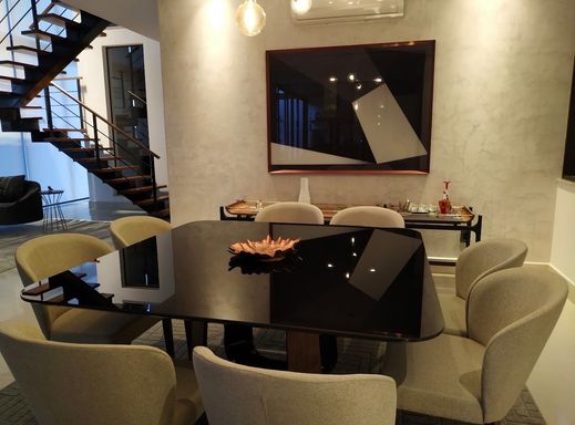 Sao 443m2 de Terreno, com 426m2 de area construida, 4 suites sendo a master com closet, living para 2 ambientes, sala de estar e jantar, lavabo, sala home tv com ar condicionado e forro acustico e cozinha toda equipada.