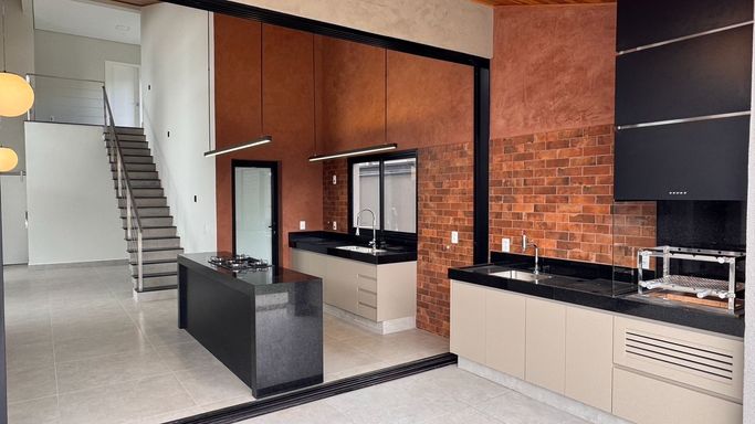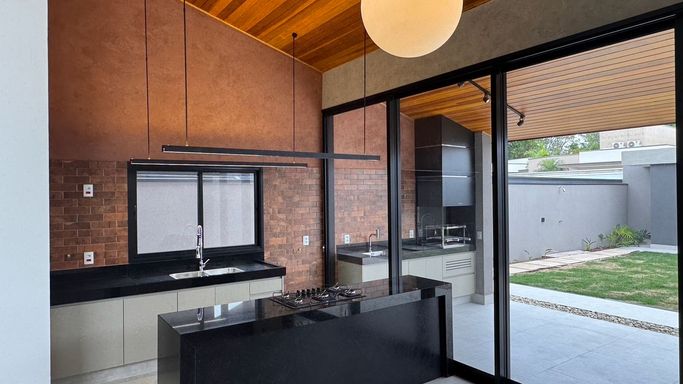 Um projeto que reune conforto e uma presença marcante e harmoniosa com 135m2 de area verde em seu paisagismo.Sao 4 quartos, cozinha integrada com area gourmet e lindo gramado, ja preparado para instalar uma piscina.