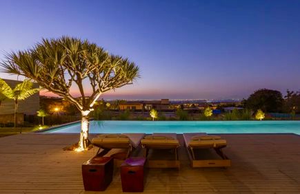 Piscina com raia, prainha e spa. Aquecimento solar da piscina e da agua interna.