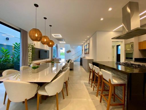 Casa a venda com 5 quartos, sendo 5 suítes hidro na master. Sala 2 ambientes com cozinha integrada e área gourmet muito aconchegante e agradável. Ampla Sala com todos ambientes integrados e uma casa toda harmoniosa. Uma linda piscina ladeada por um lindo paisagismo completa esta casa.