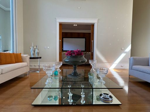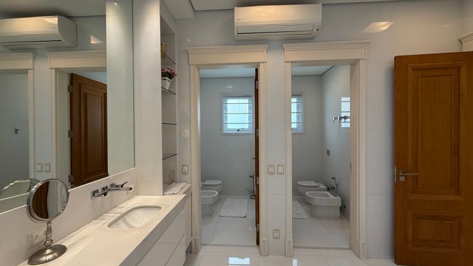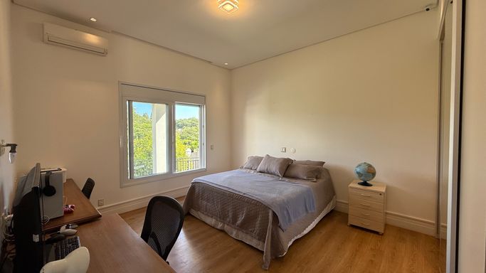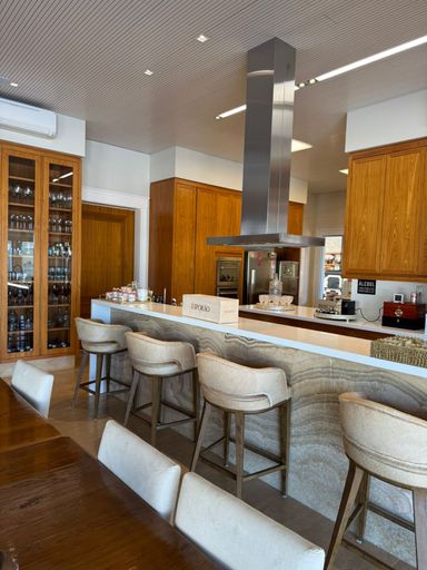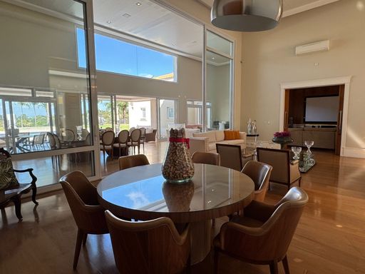 Terreno 5330m2 e área construída de 1.153,7m2 , de muito conforto, luxo ambientes aconchegantes e muita natureza. São 5 cinco belas suítes, sendo a master muito generosa, hall de entrada imponente, lavabo, sala de jantar, estar ,um excelente home cinema, sendo todos os ambientes, voltados para uma vista panorâmica de todo o lazer. Possui 2 suítes de empregados, cozinha, despensa, louceiro , horta , tudo muito privativo.