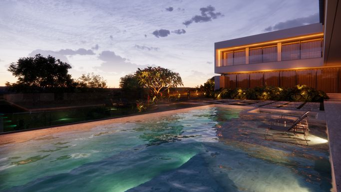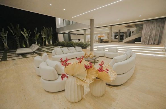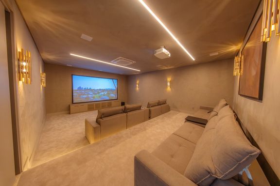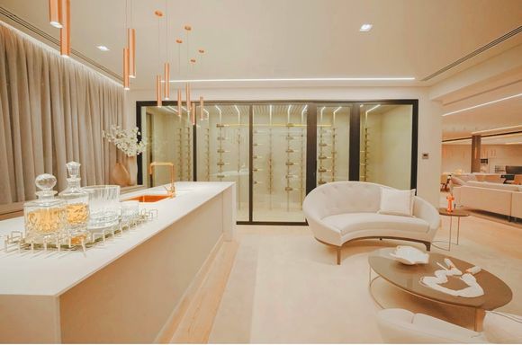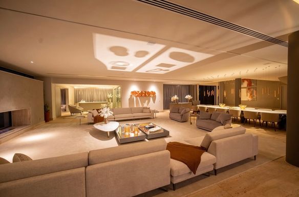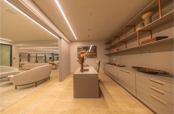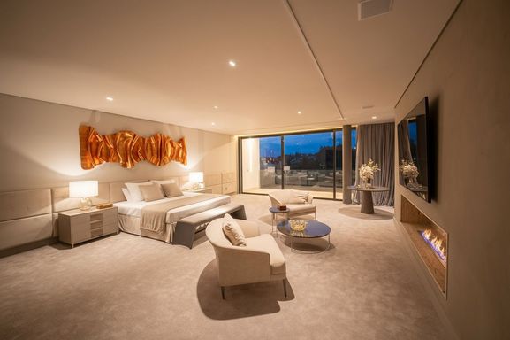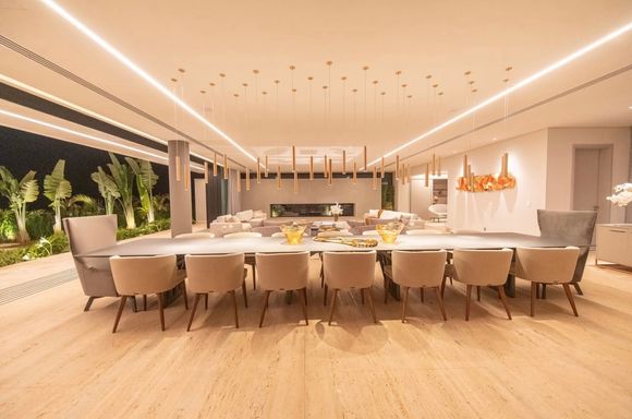 São 2.380m2 de área construída coberta + Descoberta, ambientes amplos e harmoniosos, 6 suítes sendo 1 suíte master com lareira e terraço privativo. Possui um amplo pé direito duplo, adega integrado com bar, além de espaços de lazer como SPA, sauna, home cinema, quadra de beach tennis e muito mais.