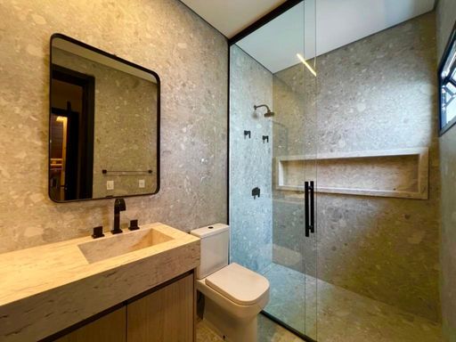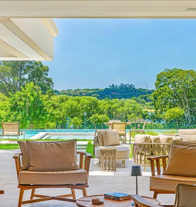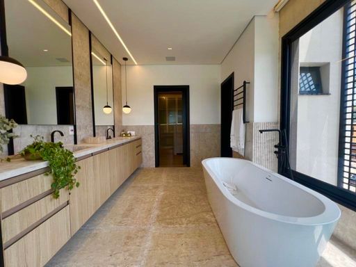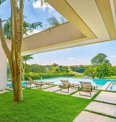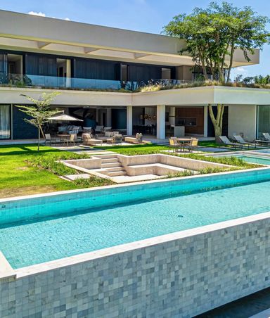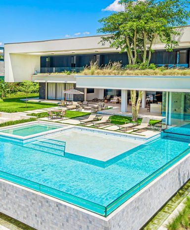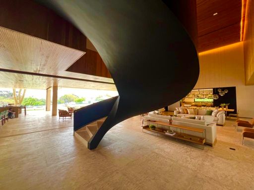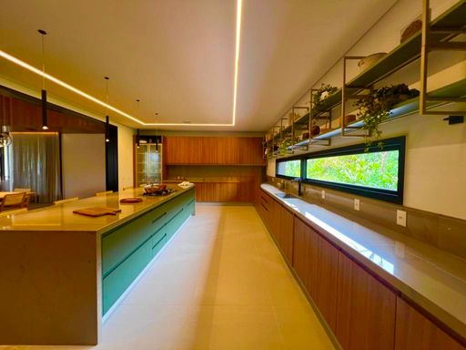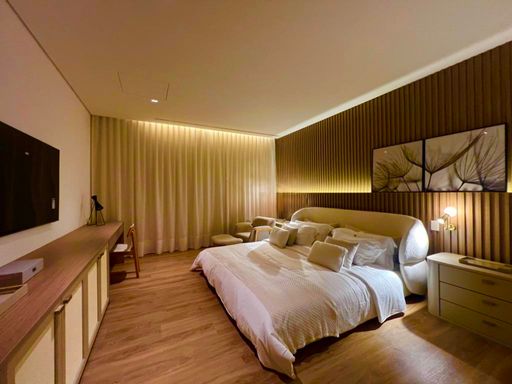 São 7 Suítes , todas maravilhosas, sendo a master com vista panorâmica, este imóvel é um luxo em todos os ambientes, sala de estar, jantar, sala home cinema, um gourmet impecável, com vista para piscina, fire place, e uma sauna super agradável. Todos os ambientes estão totalmente integrados, e os quartos com muita privacidade. Garagem para 6 veículos, sendo 3 cobertas.