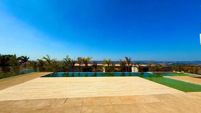 São 3.000m2 de terreno, com 1.960m2 de construção com casa de caseiro totalmente independente. Possui 7 suítes, sendo a master muito diferenciada, cinema, academia, sala de jogos, spa, escritório, elevador da Thyssen, atendendo os 3 pavimentos da casa, ar. condicionado dutado, Será entregue com toda a marcenaria , eletrodomésticos na cozinha e gourmet ( gorenje ).Completa esta casa uma linda piscina com vista panorâmica , sauna e um paisagismo encantador.
