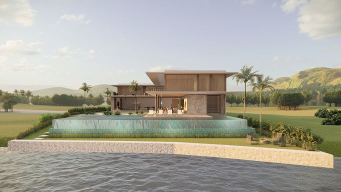 Além da piscina com prainha integrada à área gourmet, o projeto conta com um generoso spa coberto, que dá acesso à uma sauna. No pavimento superior um home theater e uma ampla varanda garantem mais lazer e comodidade.
