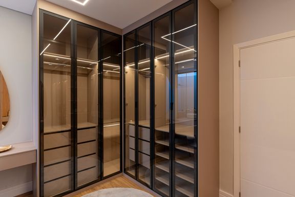 Fachada com pedra Moledo, ar condicionado, lareira, e preparada para energia fotovoltaica.
