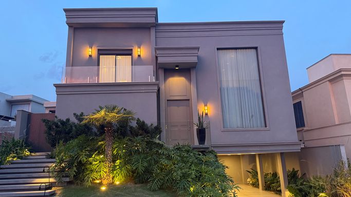Casa possui 6 garagens sendo 4 cobertas , energia fotovoltaica e uma arquitetura totalmente diferenciada.