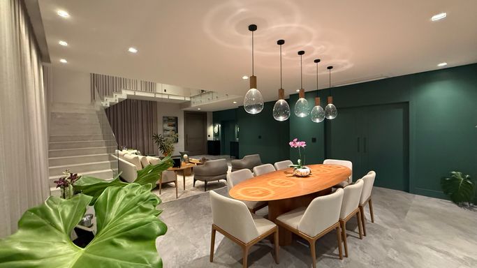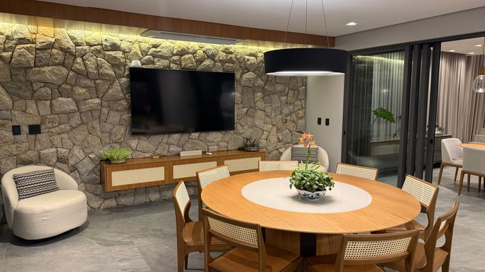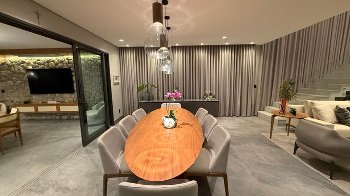Maravilhosa casa mobiliada com 462,74m2 de terreno e 489,90m2 de construçao. Um verdadeiro luxo com 5 suítes e tres com closet , living para varios ambientes , sala de estar, jantar , home cinema, lavabo, cozinha planejada , adega e escritorio.