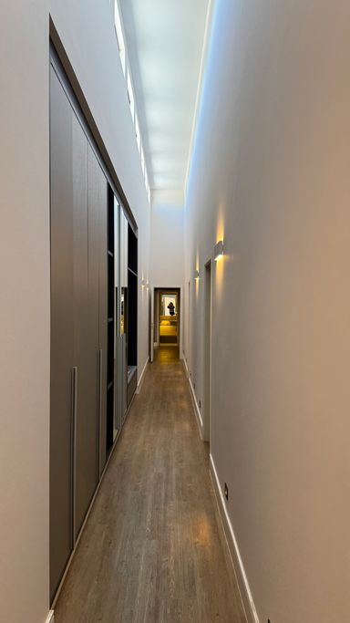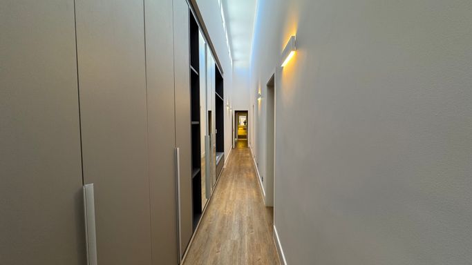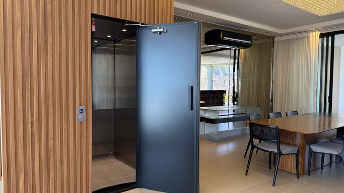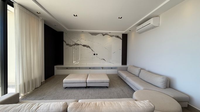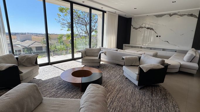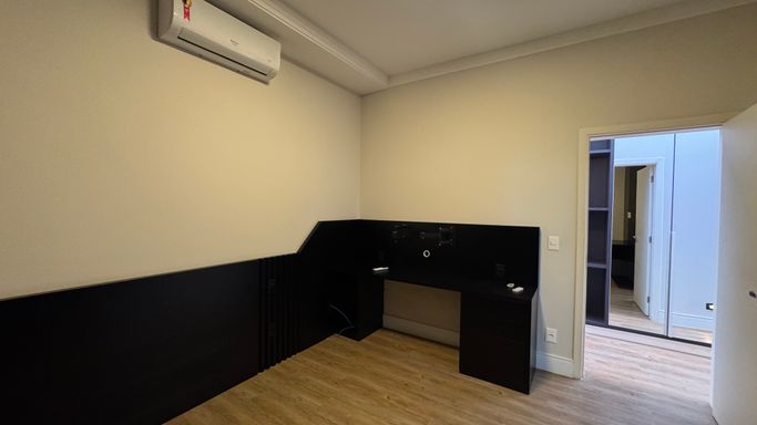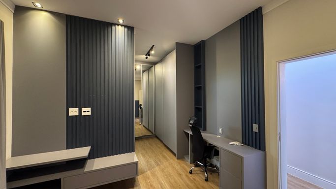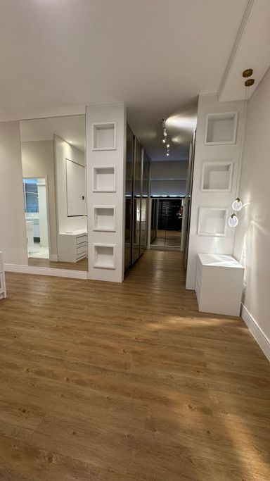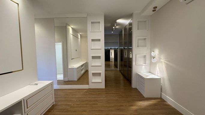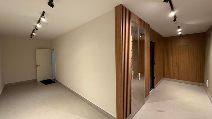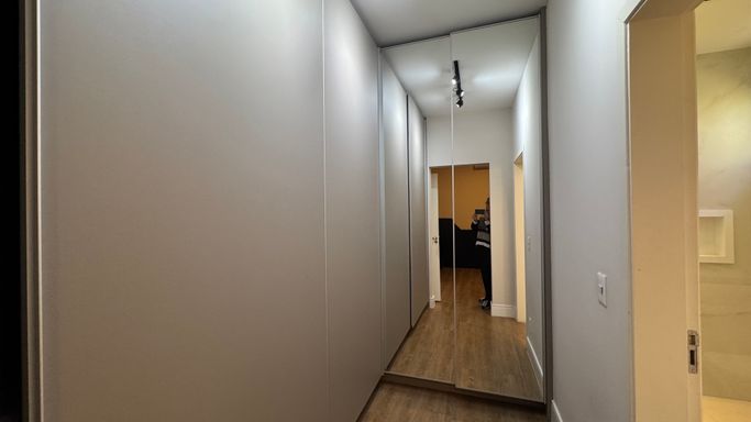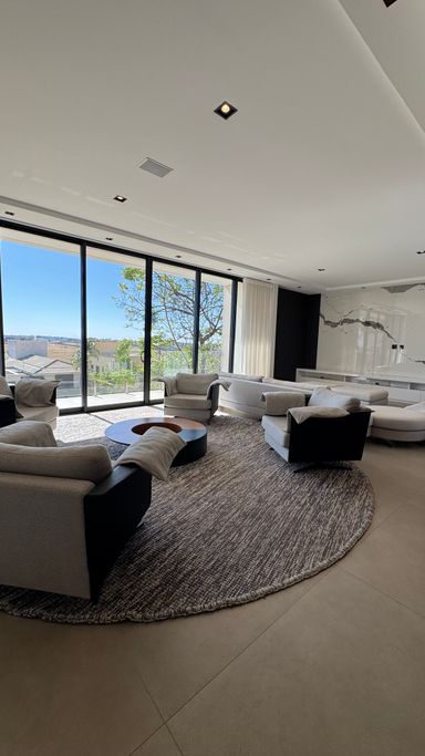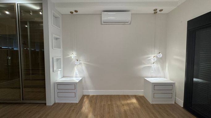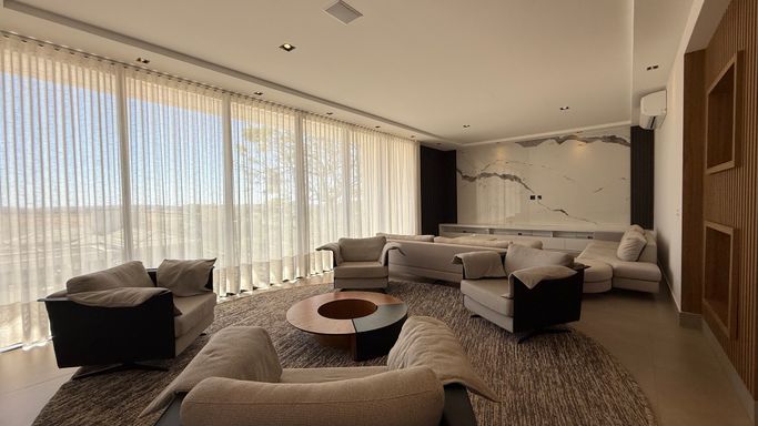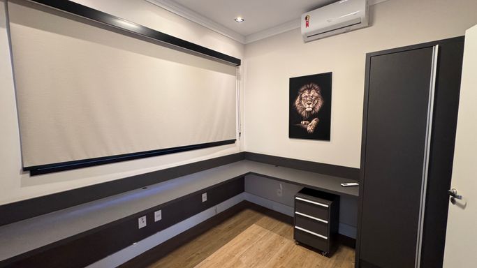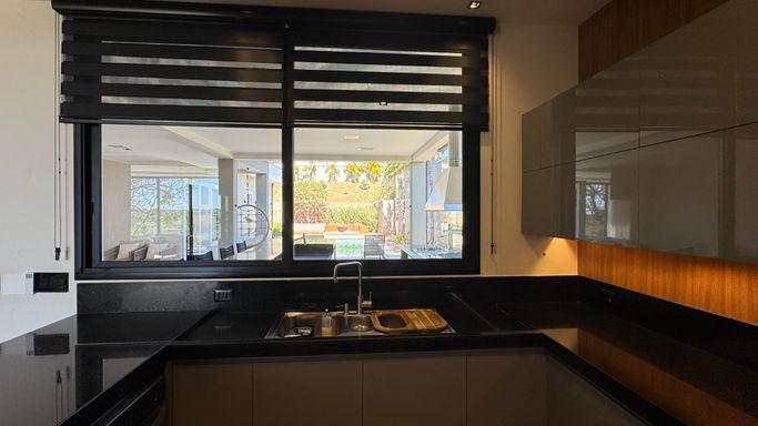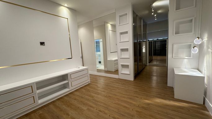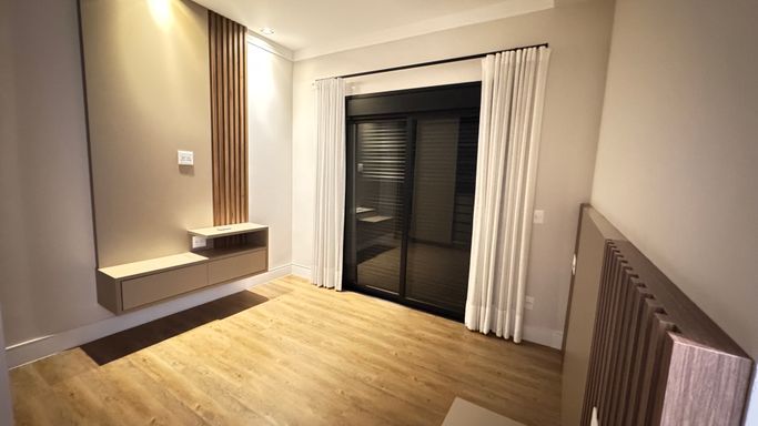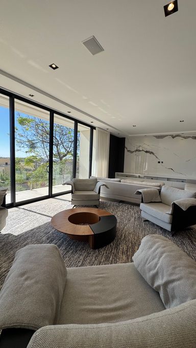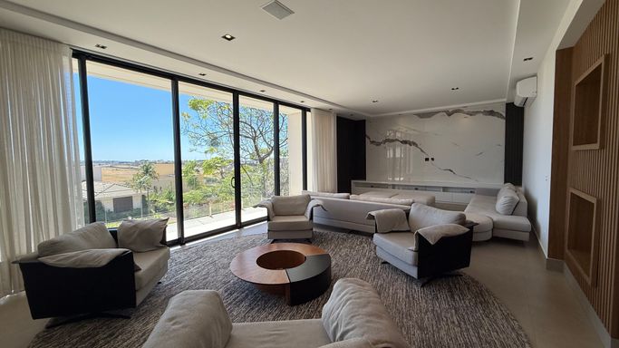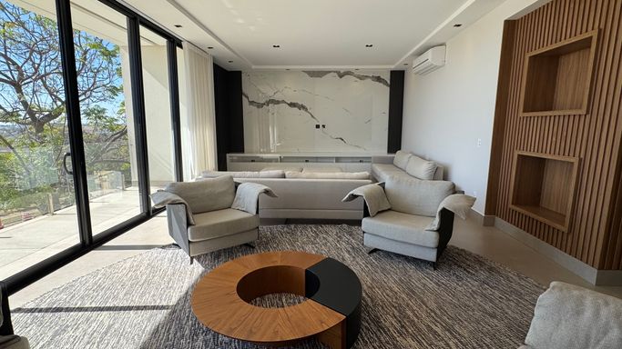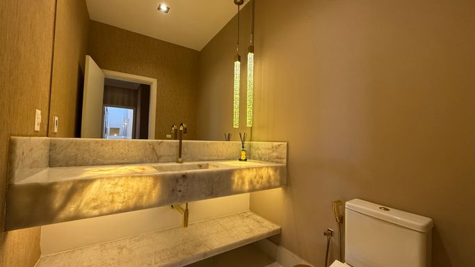 Amplo living para dois ambientes mobiliados com uma Vista deslumbrante para o por do Sol, Lavabo com pedra ônix iluminada, Adega, escritório, marcenaria e acabamentos de primeira linha.