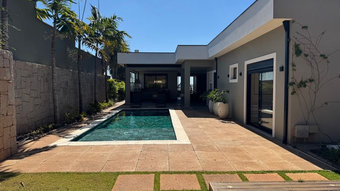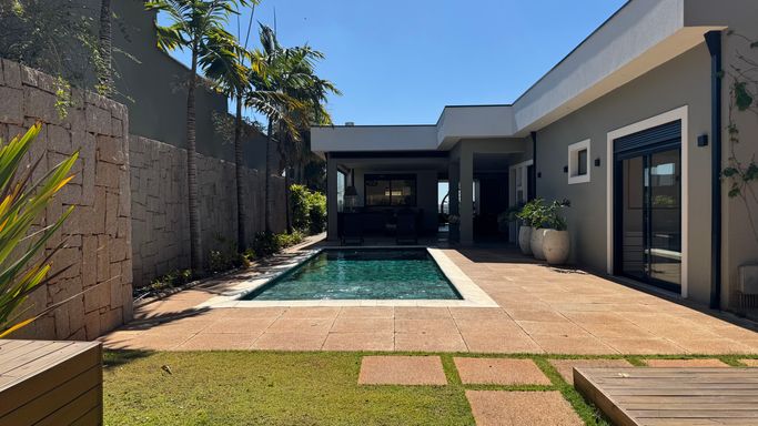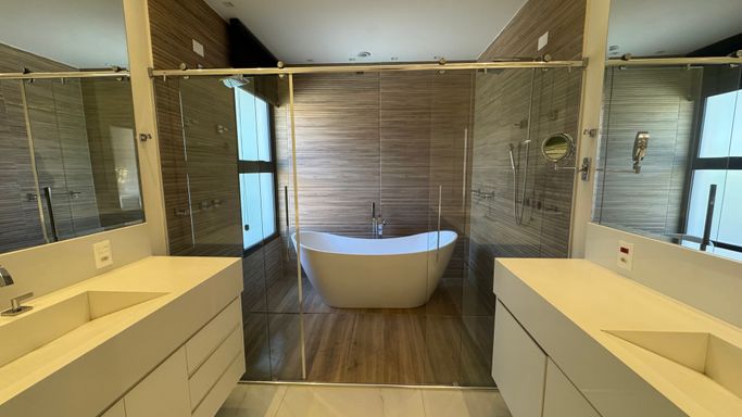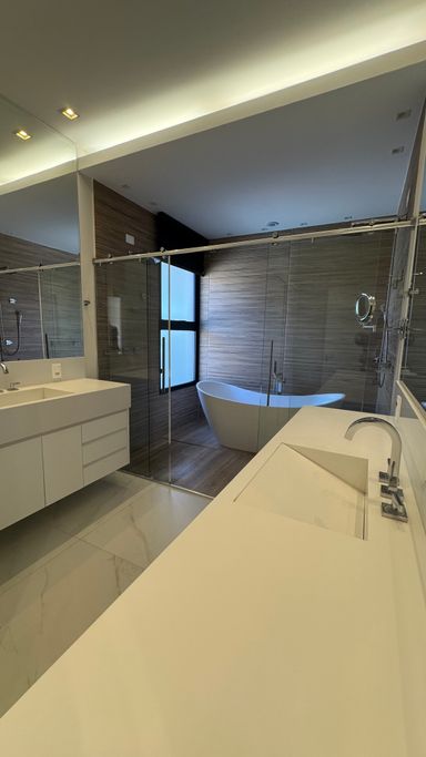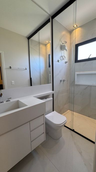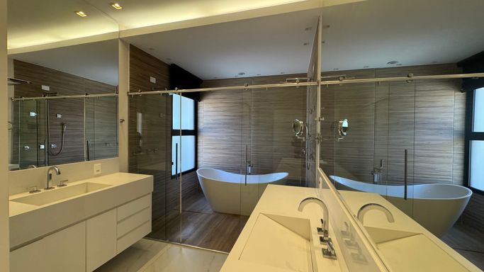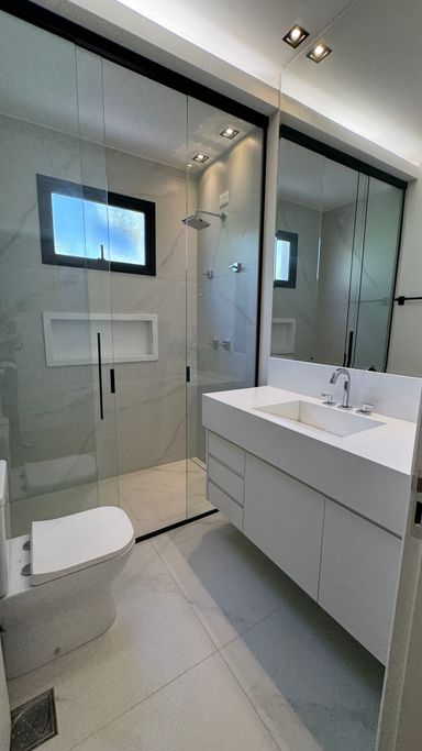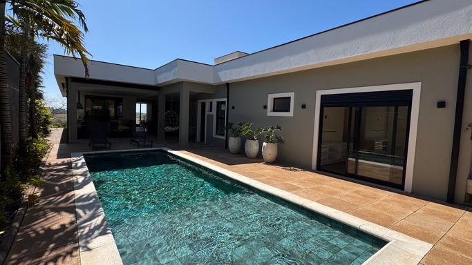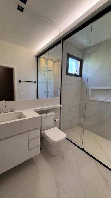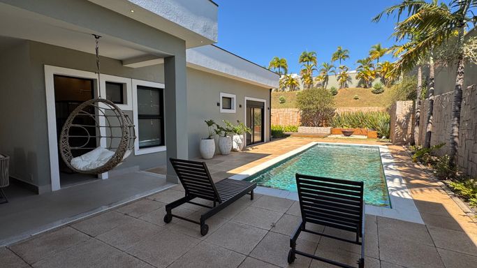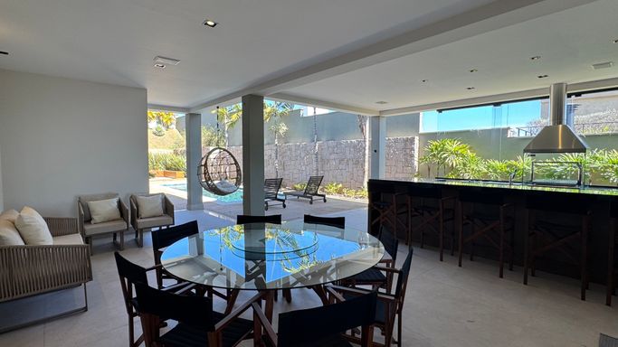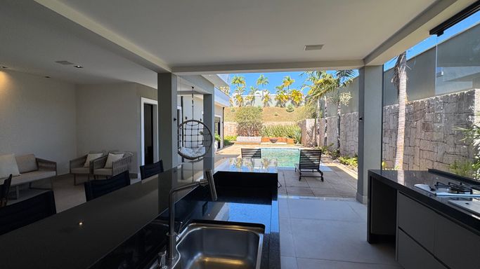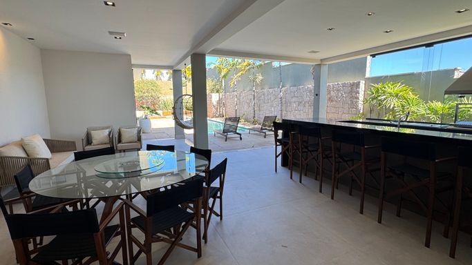 Esta belíssimo casa possui 6 suítes  , sendo a suíte master com Closet e um belo banheiro com Banheira de imersão e janela que dá acesso a área de piscina.