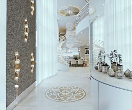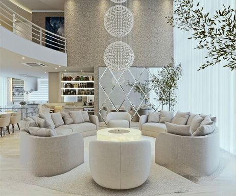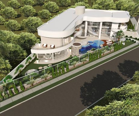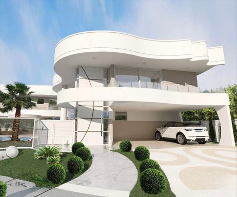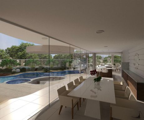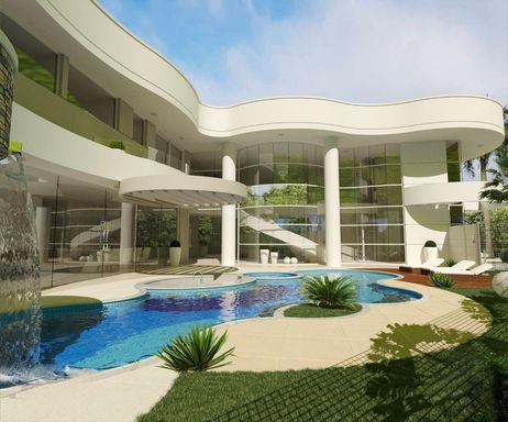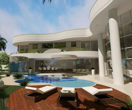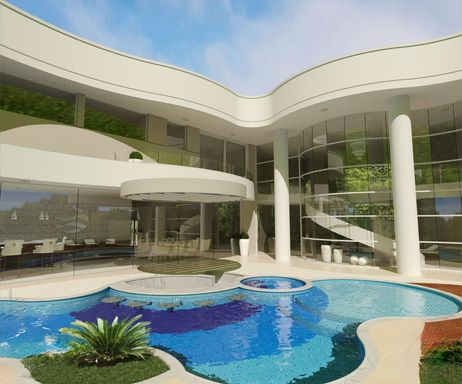 Sao 874,60m2 de terreno, com 925,89m2 de construçao, de puro luxo, com 6 suites, sendo 2 master com closet e hidromassagem, com chuveiro de teto e sacada. É uma casa com muito vidro e luxo, contendo 6 garagens, hall de acesso com pe direito duplo, escritorio, lavabo, living para varios ambientes, sala home cinema, cozinha, lavanderia, dispensa , escada em curvas para o acesso intimo.
