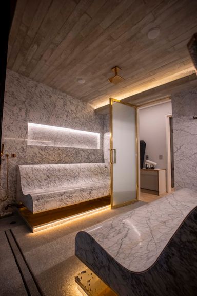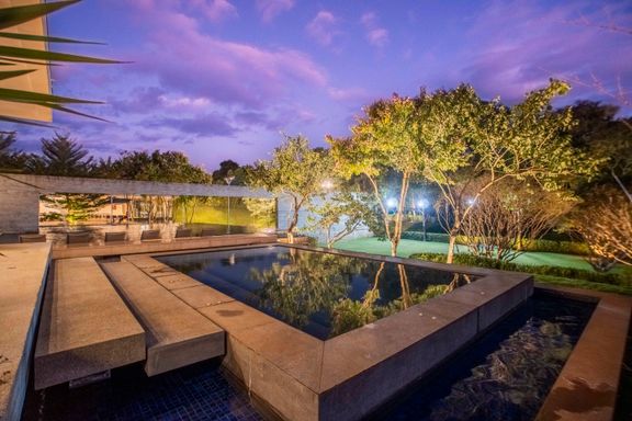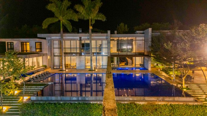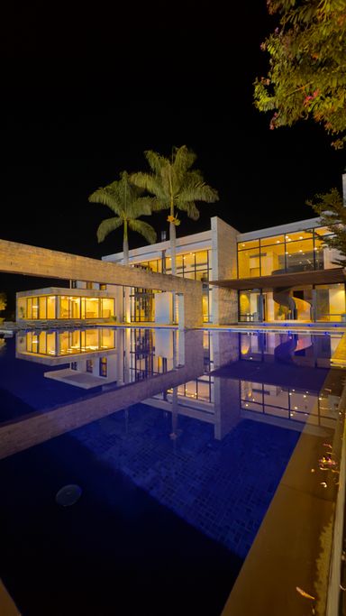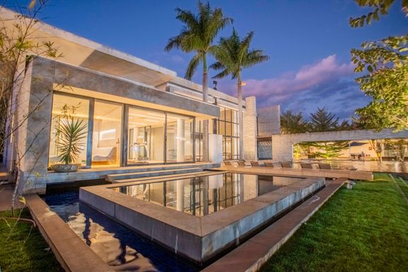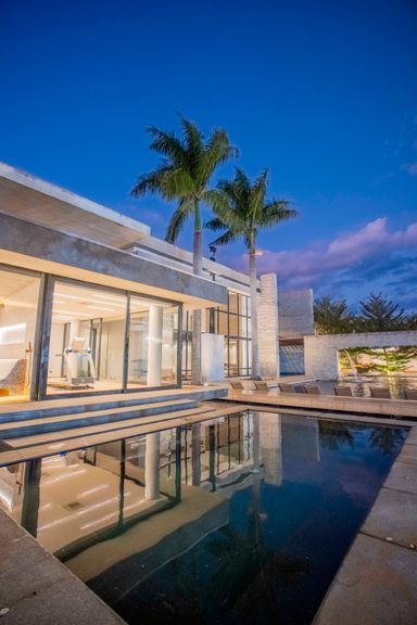 A suite master possui um espaço generoso com closet, camarim particular, escritorio, sala de descanso e uma vista para o por do sol maravilhosa. No living possui uma sala home cinema para Adulto e outra infantil, uma area gourmet super aconchegante, fire place, sauna revestida em marmore Carrara academia, sala de jogos, quadra de tenis e campo de futebol particular.
