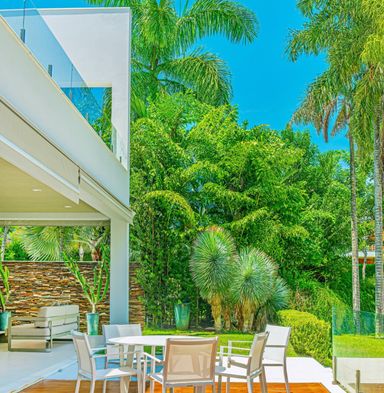 Sao 5 suites com armarios e ar condicionado, sendo 1 suite master com banheira e 1 suite no terreo. Living para varios ambientes, mobilia nova, lavabo e lareira.